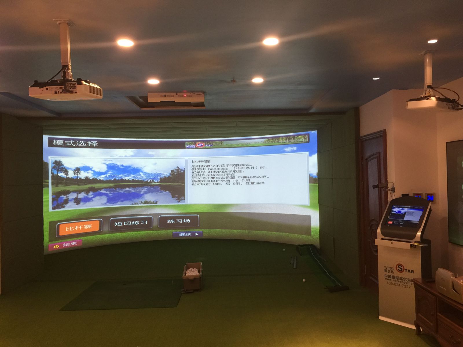 沈陽(yáng)市鐵西區(qū)紅星美凱龍國(guó)際館七樓的環(huán)屏模擬高爾夫展廳竣工。這是國(guó)內(nèi)的第八個(gè)wingStar模擬高爾夫展廳,但卻是wingStar品牌在沈陽(yáng)市的第一個(gè)展廳。這是一個(gè)高起點(diǎn)的展廳,高速攝像感應(yīng)器,且是環(huán)屏結(jié)構(gòu)。至此,wingStar品牌在沈陽(yáng)、大連、長(zhǎng)春、哈爾濱等東北重鎮(zhèn)都有了自己的展廳,根據(jù)地更加穩(wěn)固。這個(gè)展廳加載了揮桿分析儀,使這里設(shè)備的教學(xué)功能更強(qiáng)。